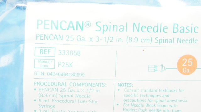- B. Braun 333858 Pencan Spinal Ndle Basic Support Tray 25 Ga x 3-1/2inch