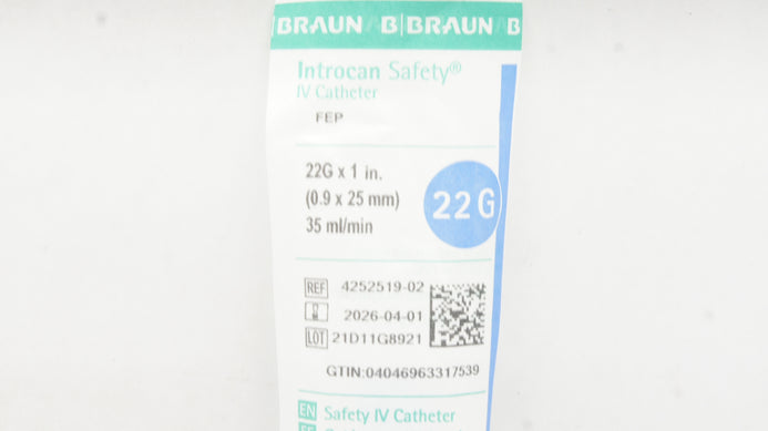 - B.Braun 4252519-02 Introcan Safety IV Cath. FEP 22G x 1inch x 35mL/min