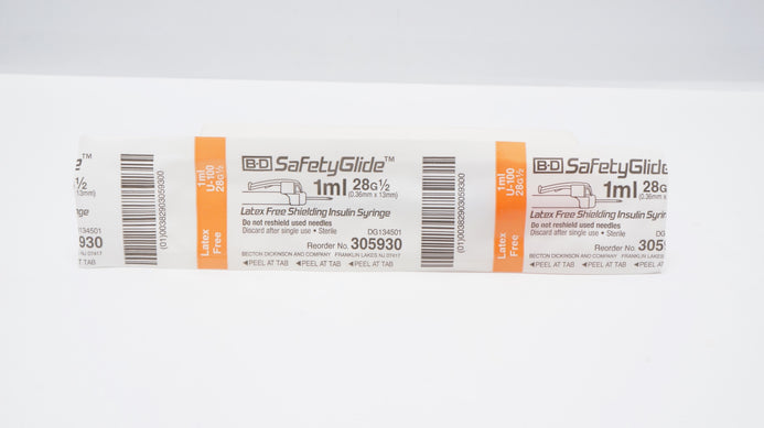 - B-D SafetyGlide 305930 Latex Free Shielding Insulin Syringe 1ml 28G 1/2