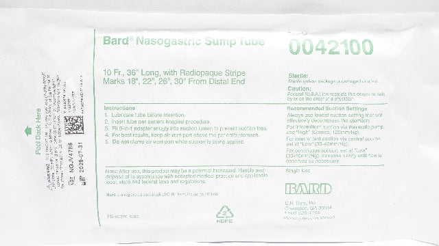 - Bard 0042100 Nasogastric Sump Tube with Radiopaque Stripe Marks 10Fr x 36inch