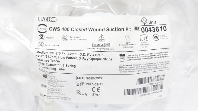 - Bard 0043610 Davol CWS 400 Closed Wound Suction Kit (x)