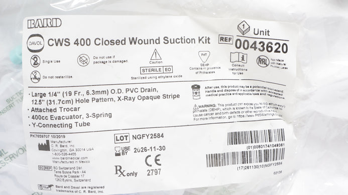 - Bard 0043620 CWS 400 Closed Wound Suction Kit