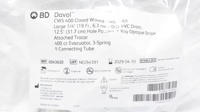 - Bard 0043620 CWS 400 Closed Wound Suction Kit