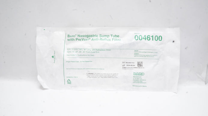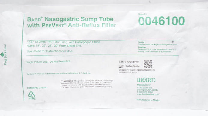 - Bard 0046100 Nasogastric Sump Tube with PreVent Anti-Reflux Filter 10Fr x 36inch