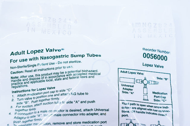 - Bard 0056000 Adult Lopez Valve with Nasogastric Sump Tubes