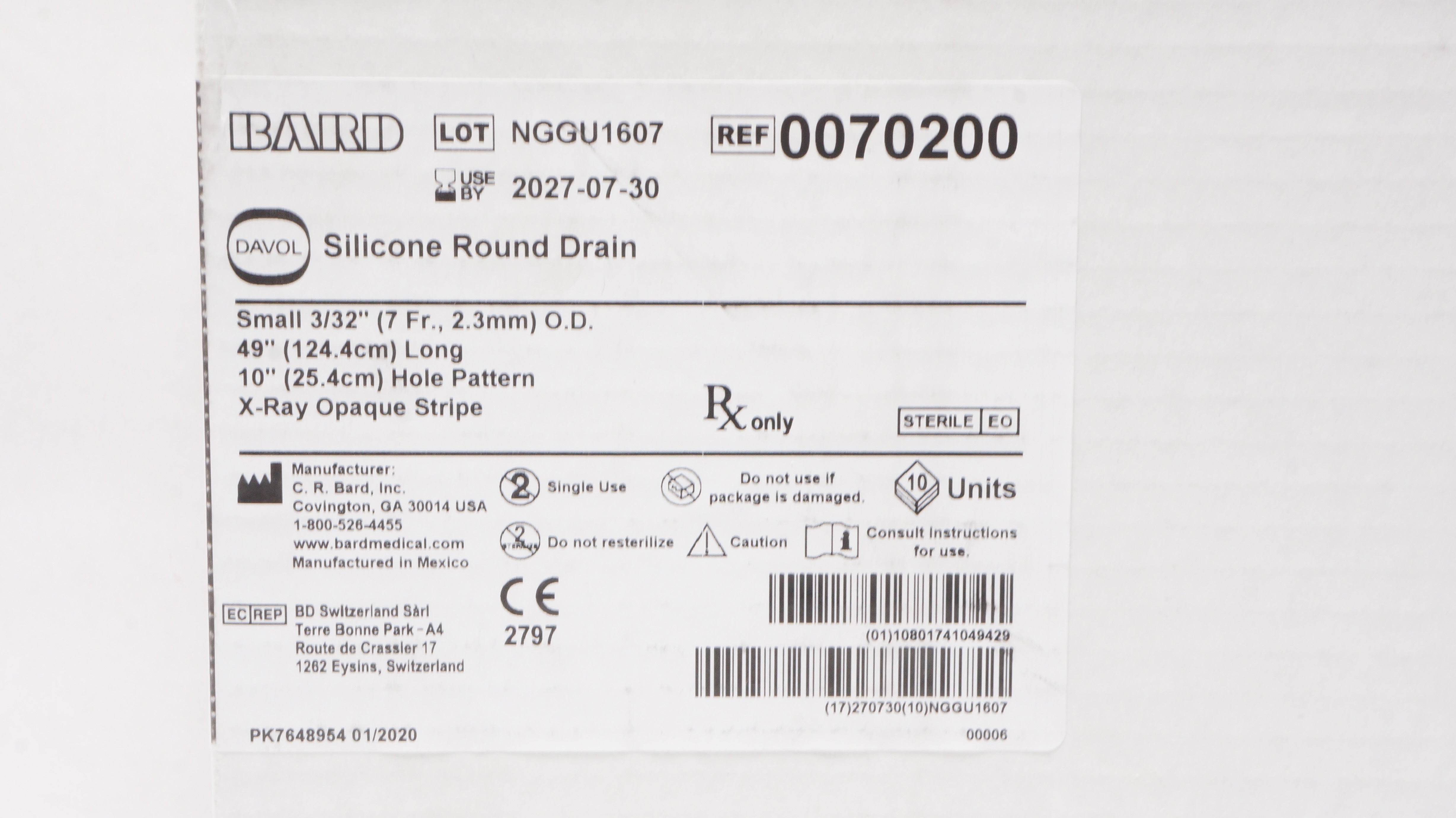 - Bard 0070200 Davol Silicone Round Drain Small 3/32inch x 49 x 10inch - Box of 10