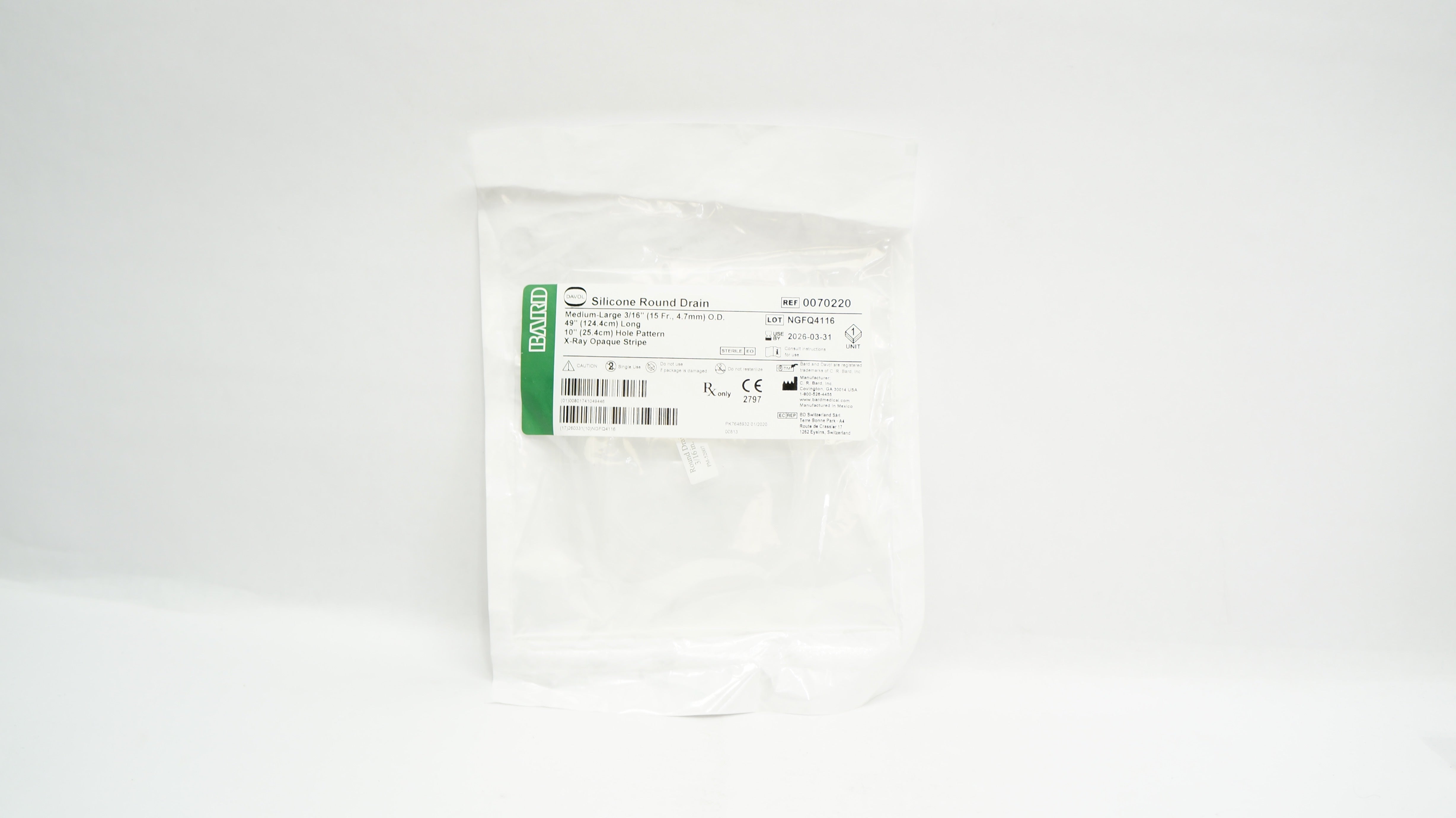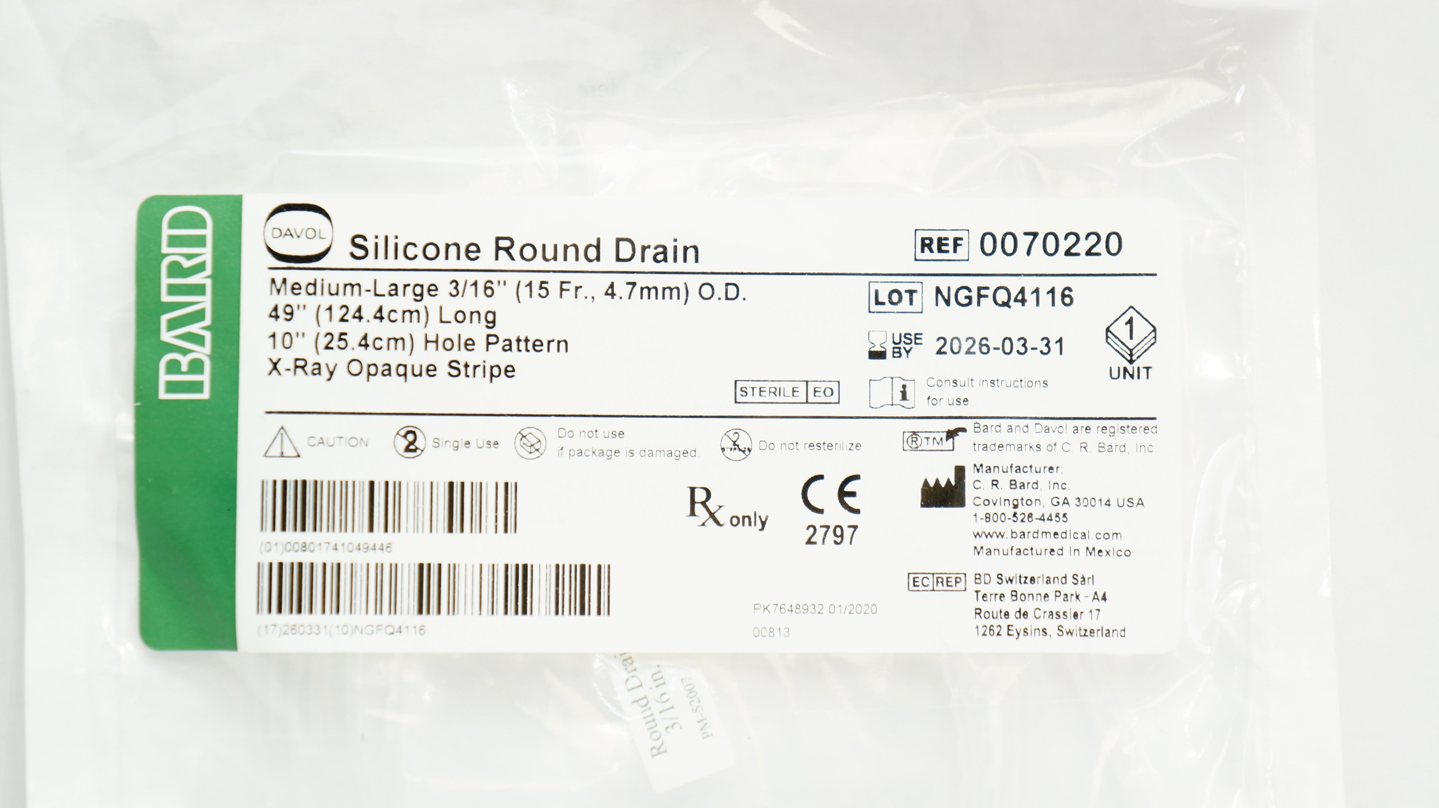 - Bard 0070220 Davol Silicone Round Drain 3/16 inch O.D. x 49 inch x 10 inch