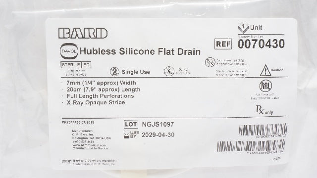 - Bard 0070430 Davol Hubless Silicone Flat Drain 1/4 inch x 7.9 inch Approx.