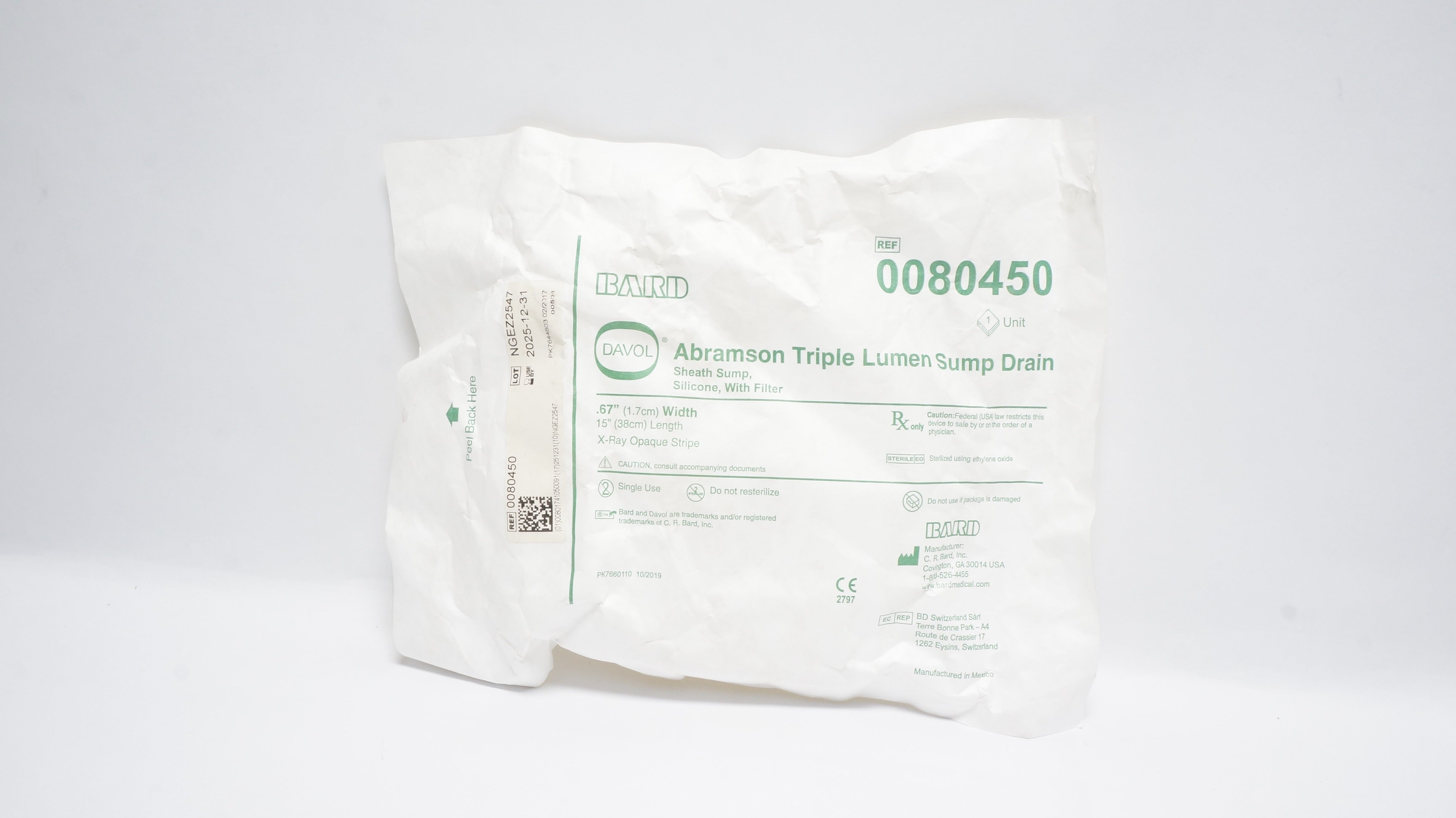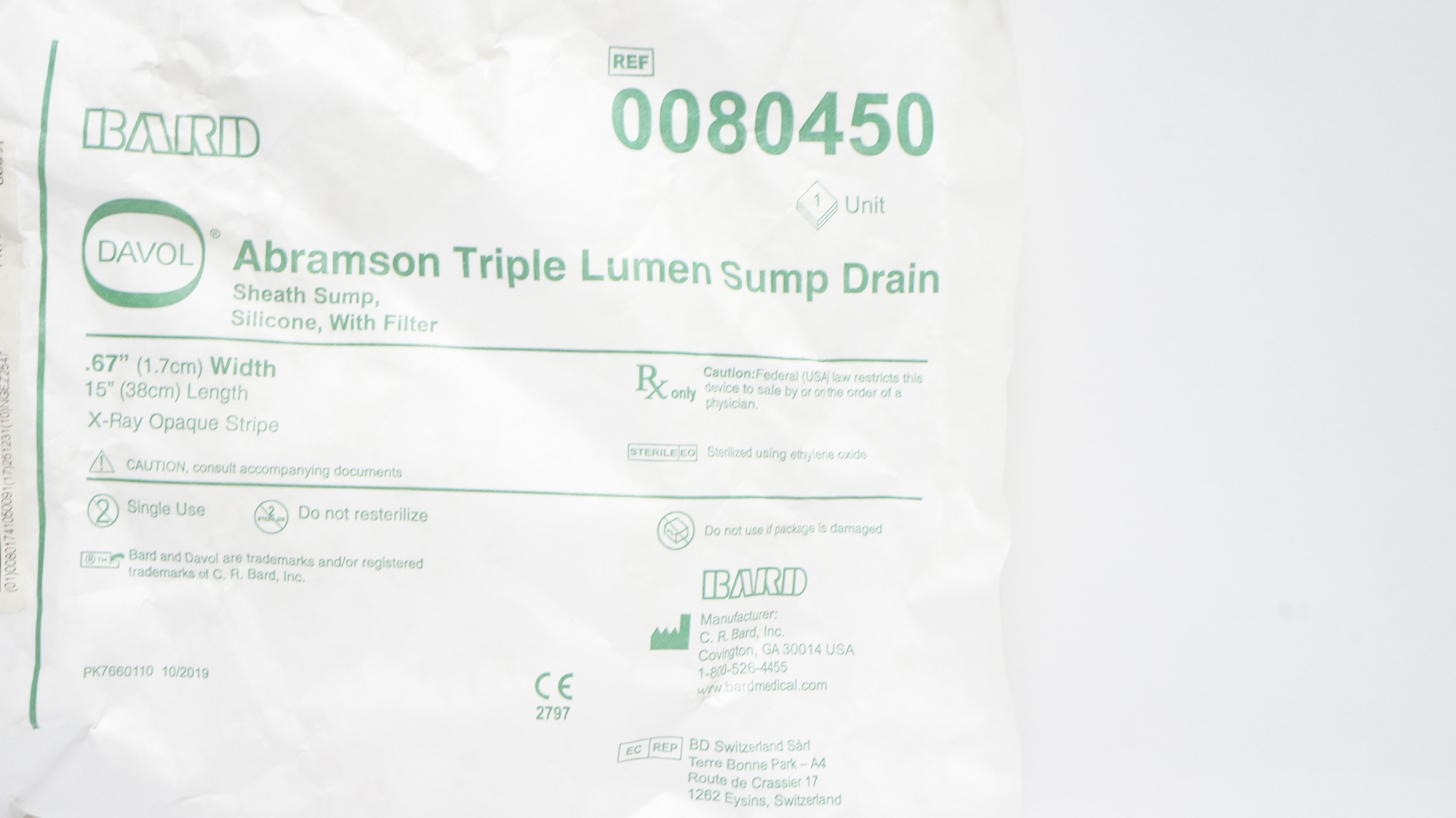 - Bard 0080450 Abramson Triple Lumen Sump Drain 0.67inch x 15inch