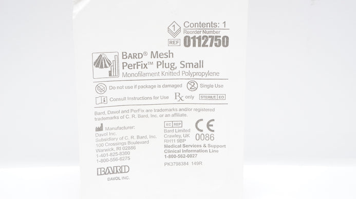 - Bard 0112750 Mesh Perfix Plug Small Monofilament Knitted Polypropylene (x)
