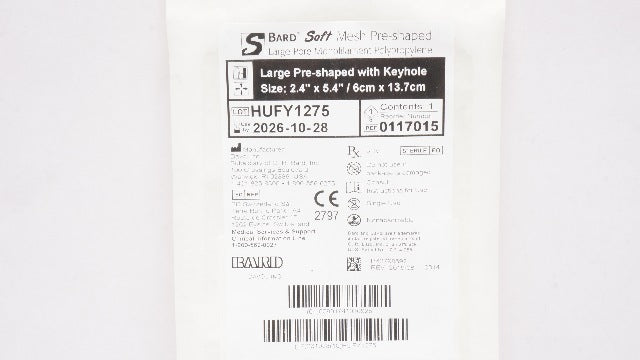 - Bard 0117015 Soft Mesh Pre-Shaped Large Pore Monofilament 2.4inch x 5.4inch