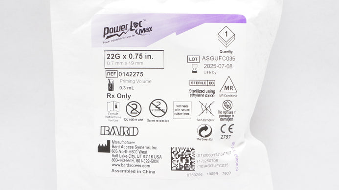 - Bard 0142275 PowerLoc Max Power-Injectable Infusion Set 22G x 0.75in (x)