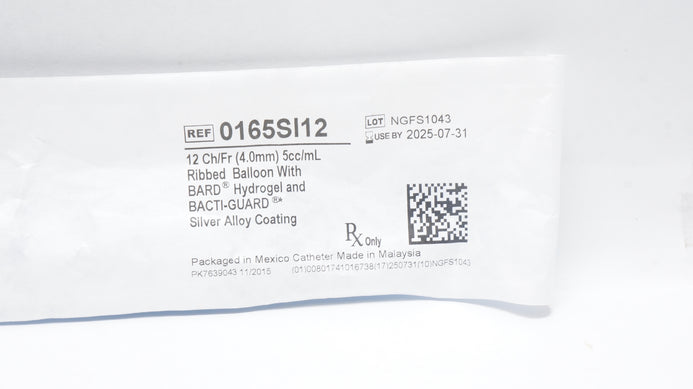 - Bard 0165SI12 Bardex I.C. Anti-Infective Foley Cath. 12 Fr 5cc/mL Ribbed Balloon