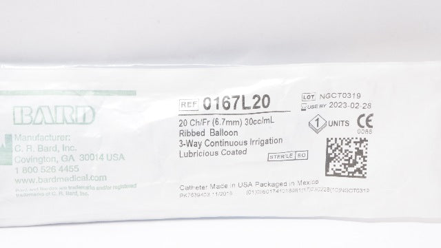 - Bard 0167L20 Bardex Foley Cath. 20Fr 30cc/mL Ribbed Balloon