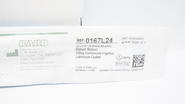 - Bard 0167L24 Bardex Foley Lubricious Coated Cath. 24Ch/Fr 30cc/mL Ribbed Balloon