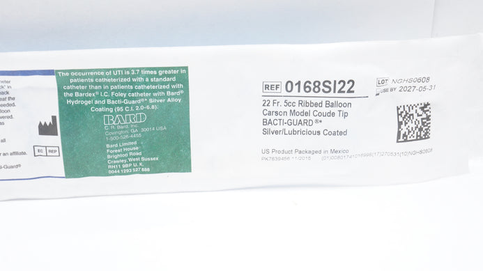 - Bard 0168SI22 Bardex I.C. Anti-Infective Foley Cath. 22Fr 5cc Ribbed Balloon