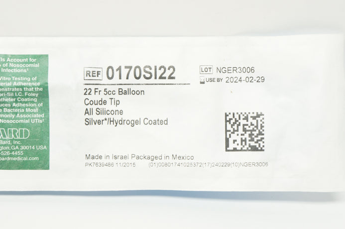 - Bard 0170SI22 Infection Control All-silicone Foley Cath. 22Fr 5cc Balloon
