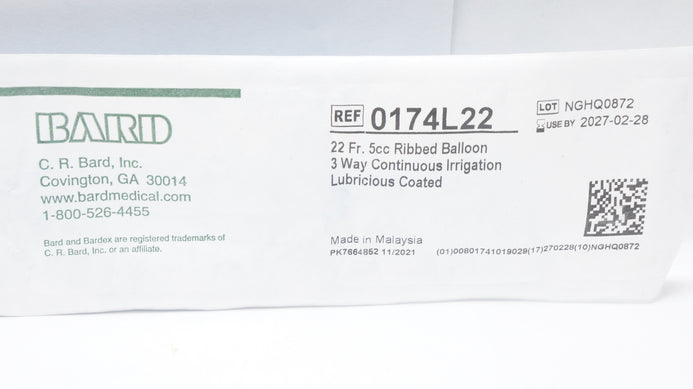 - Bard 0174L22 Bardex Lubricious Coated Foley Cath. 22Fr 5cc Balloon
