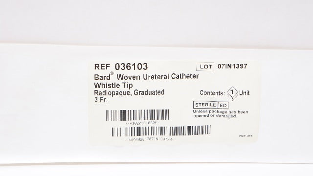 - Bard 036103 Woven Ureteral Cath. Whistle Tip Radiopaque Graduated 3Fr