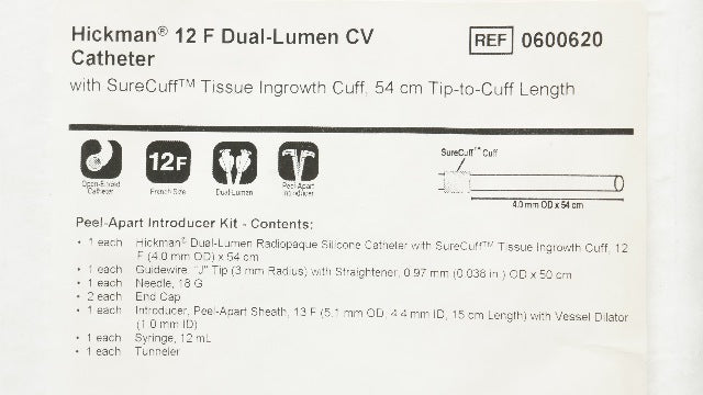 - Bard 0600620 Hickman Dual-Lumen Hemodialysis Cath. 12 Fr x 54cm (x)