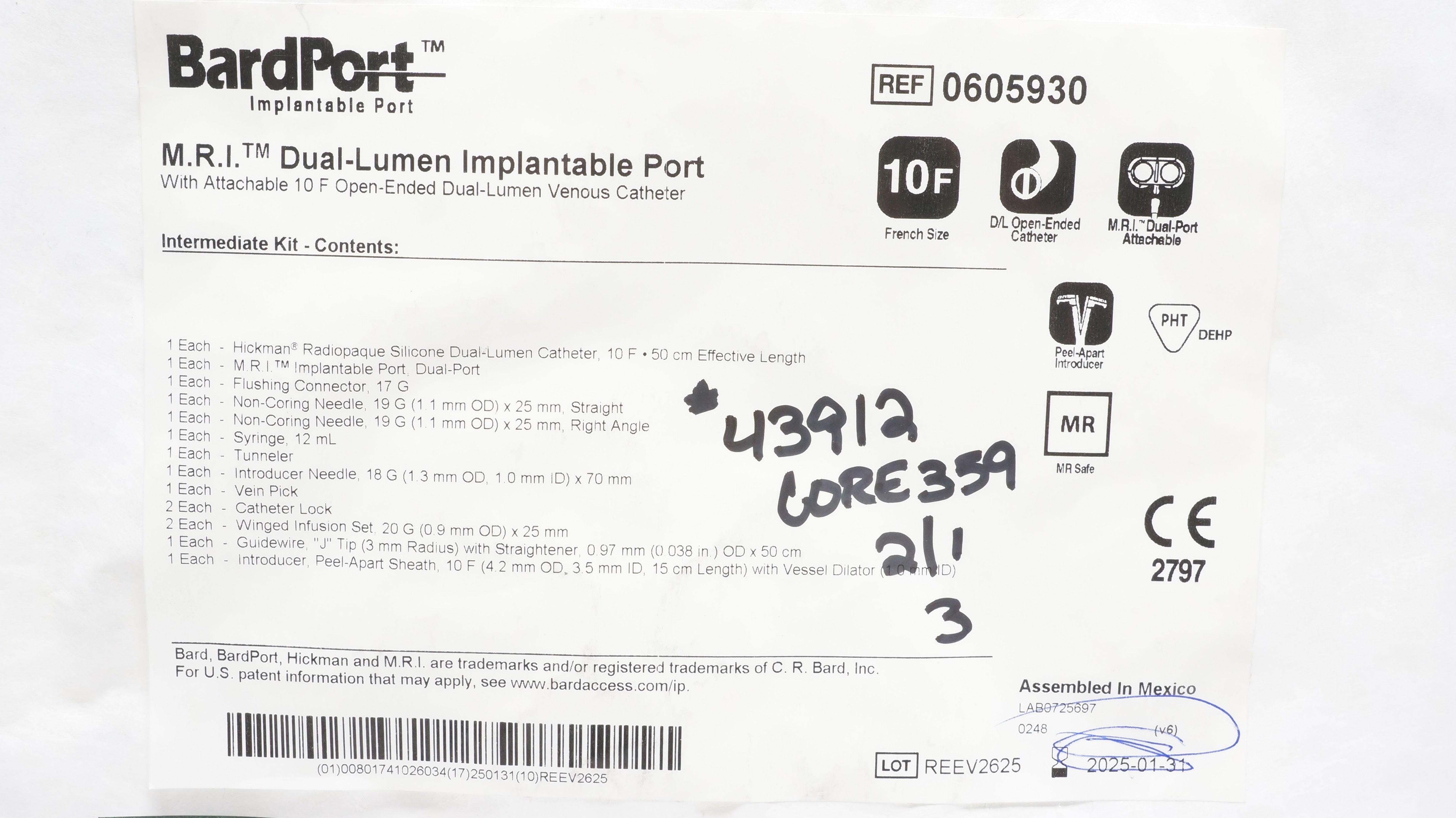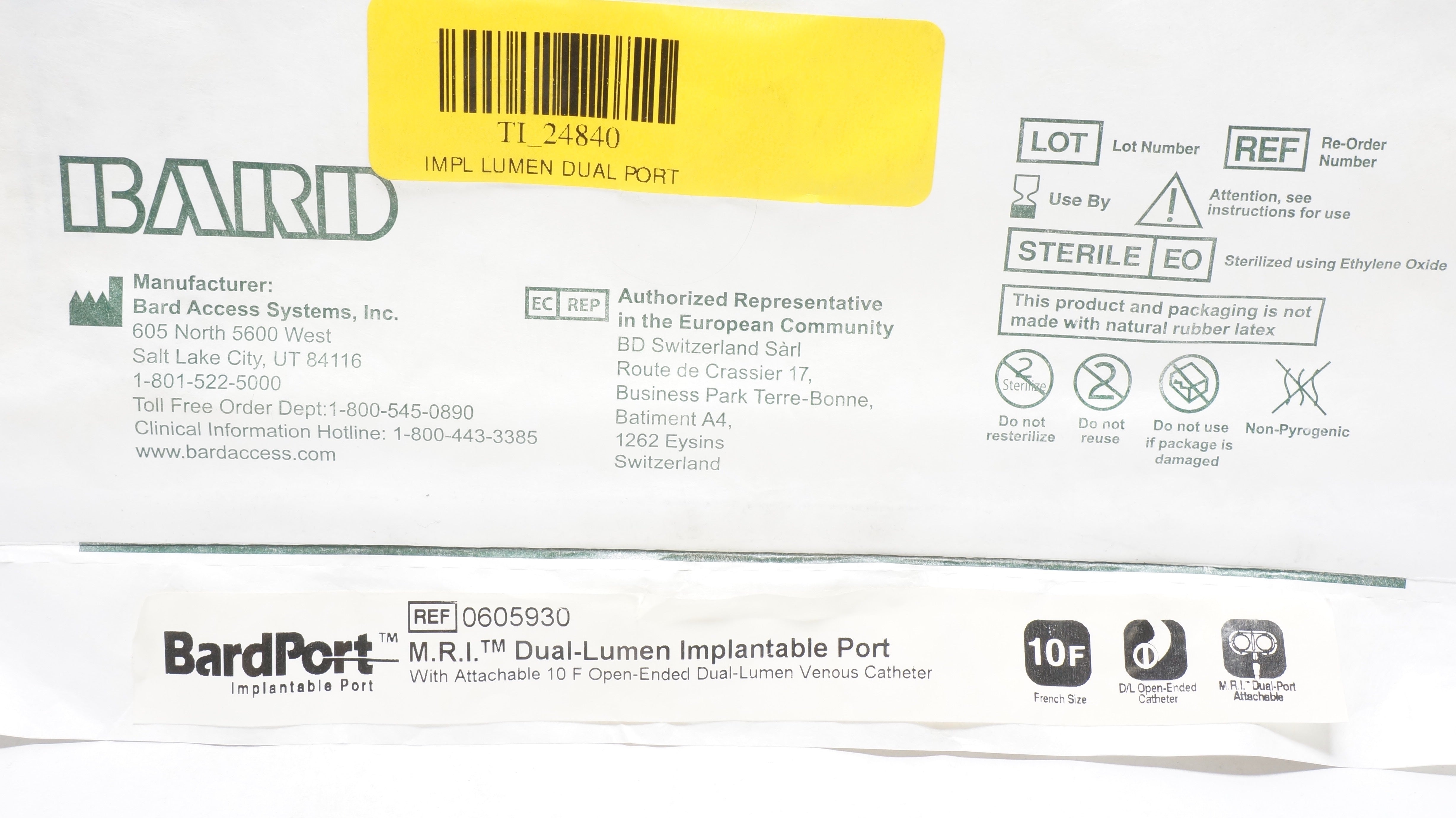 - Bard 0605930 BardPort MRI Dual-Lumen Implantable Port W/10F Attachable Cath.(x)
