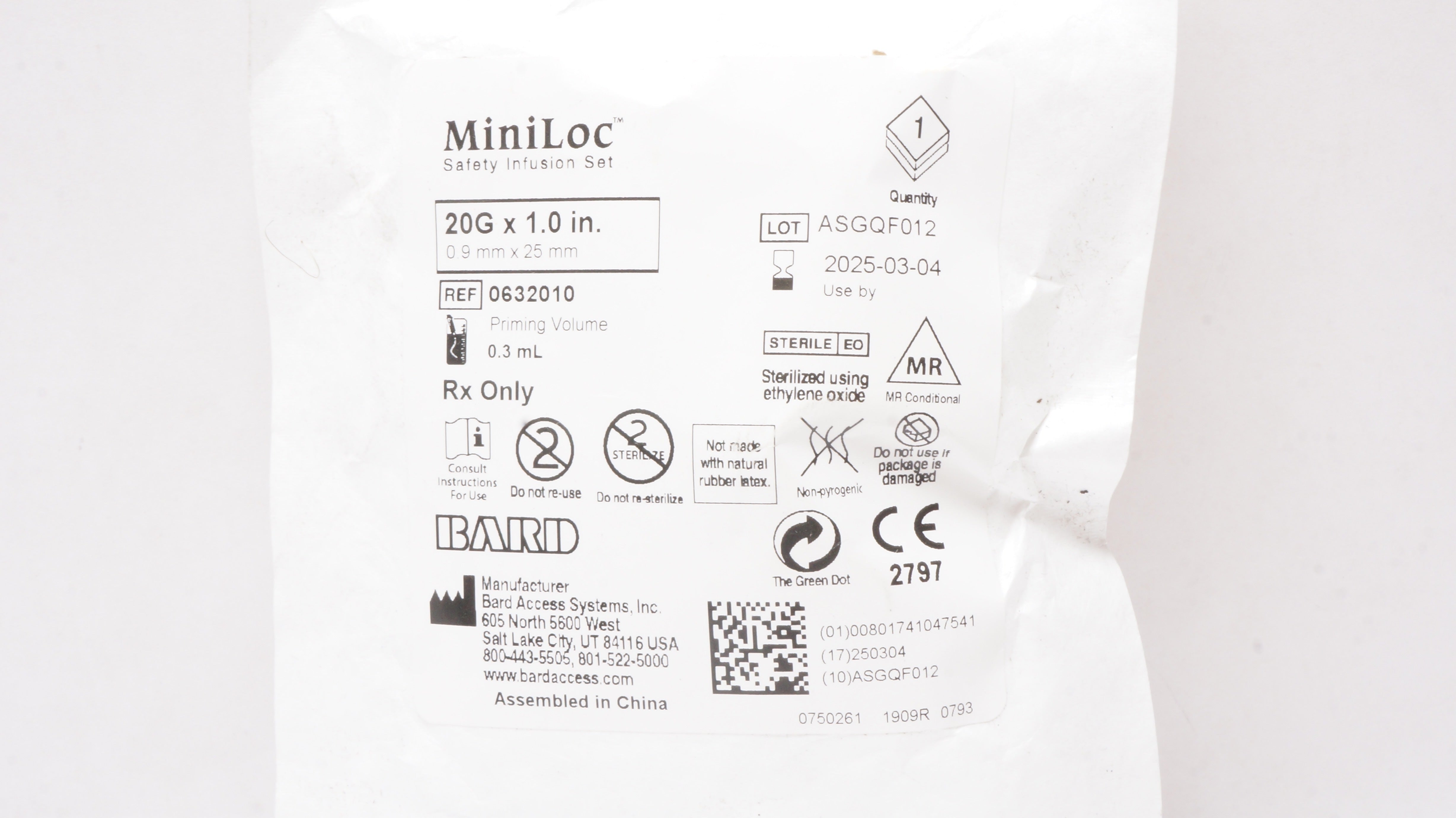 - Bard 0632010 MiniLoc Safety Infusion Set 20G x 1.0inch, Priming Volume 0.3mL