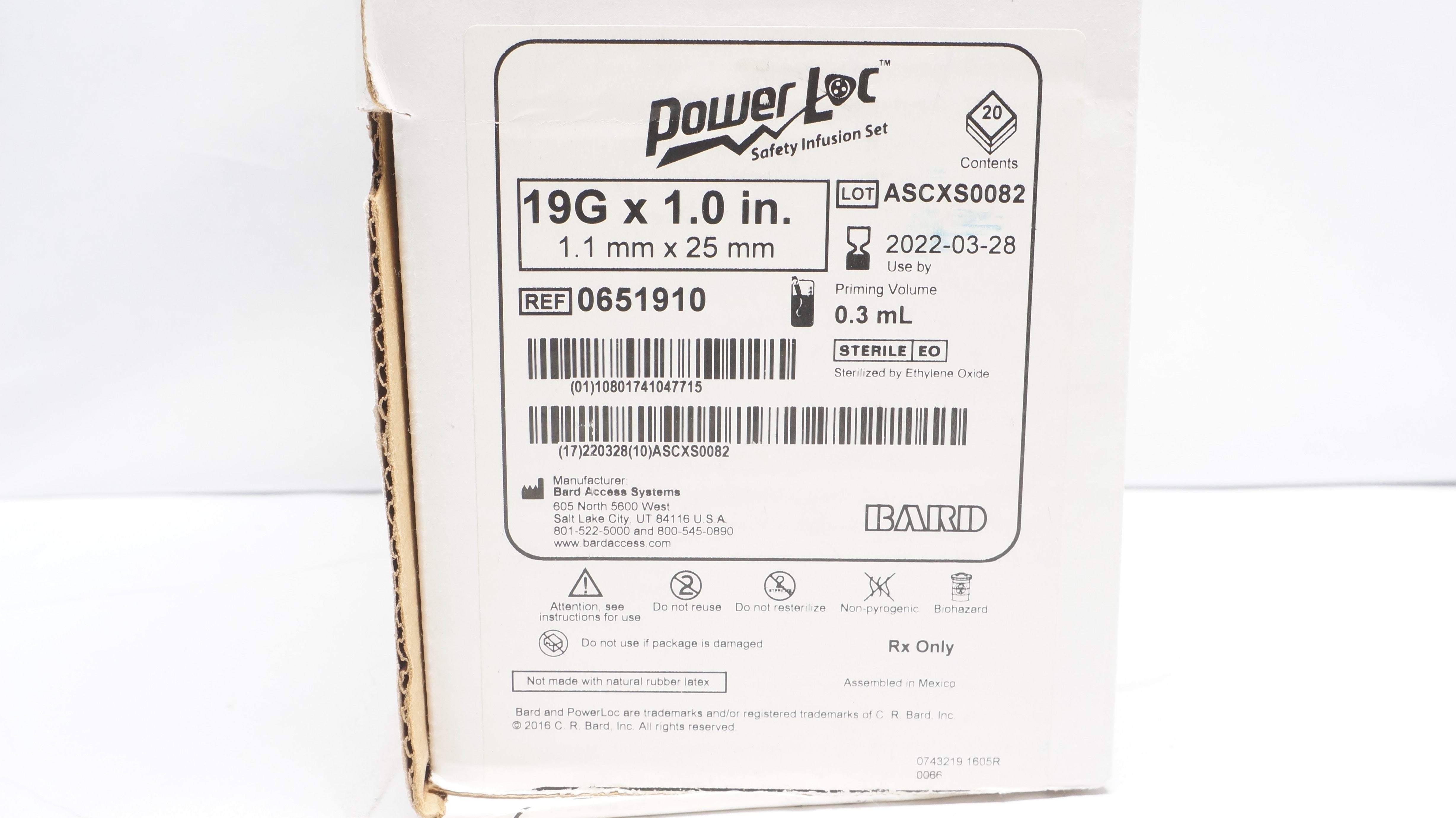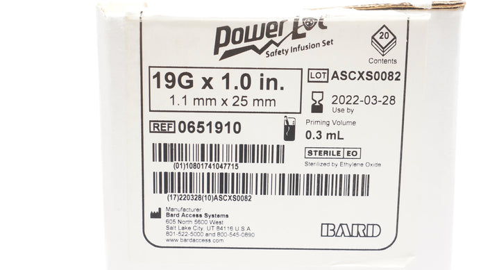 - Bard 0651910 PowerLoc Safety Infusion Set 19G x 1.0inch - Box of 20 (x)