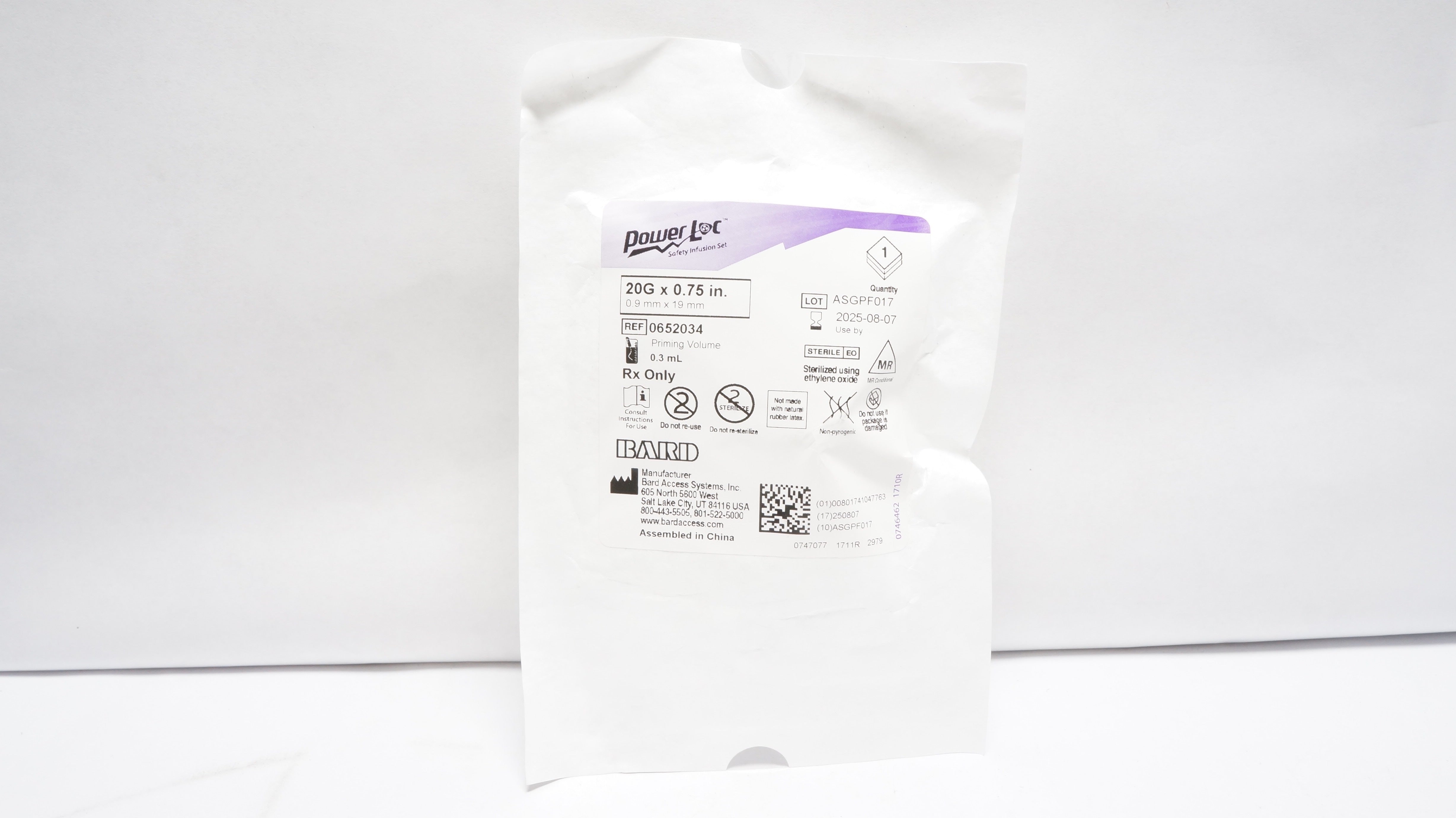 - Bard 0652034 PowerLoc Safety Infusion Set 20G x 0.75inch Prim. Vol. 0.3mL (x)