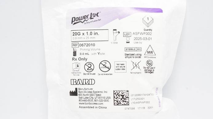 - Bard 0672010 Power Loc Safety Infusion Set 20G x 1.0 inch, Prim. Vol. 0.4mL (x)