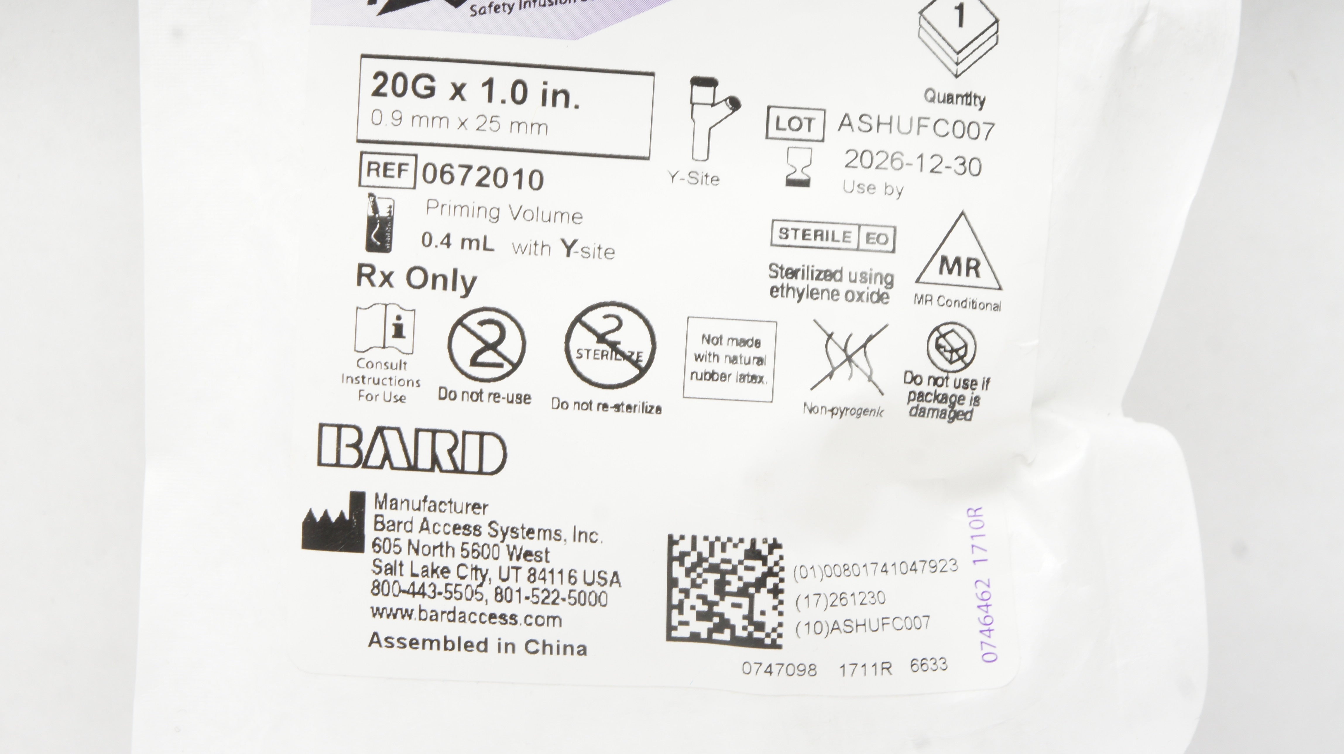 - Bard 0672010 Power Loc Safety Infusion Set 20G x 1.0inch, Priming Vol. 0.4mL