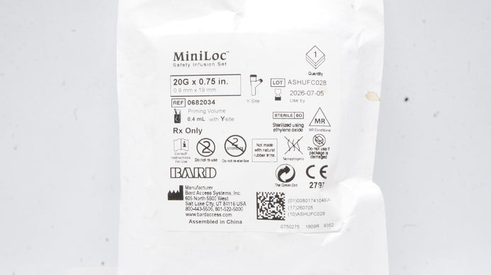 - Bard 0682034 MiniLoc Safety Infusion Set 20G x 0.75inch