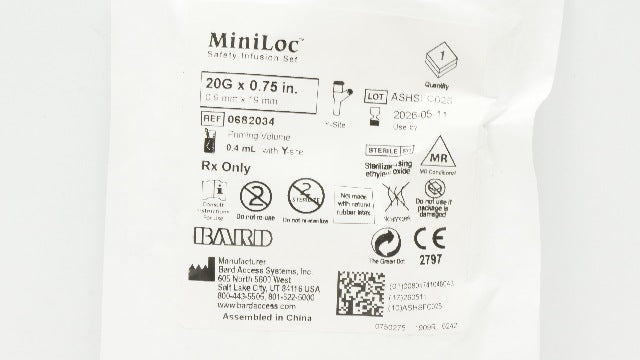 - Bard 0682034 MiniLoc Safety Infusion Set 20G x 0.75inch