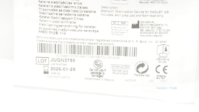 - Bard 0684-00-0472 StatLock Cath. Stabilization Device Maquet IAB