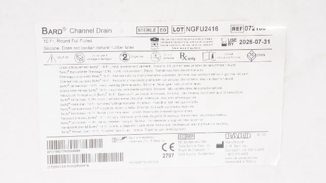 - Bard 072186 Channel Drain Round Full Fluted 10Fr - Box of 10