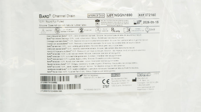 - Bard 072186 Round Full Fluted Silicone Channel Drain 10Fr
