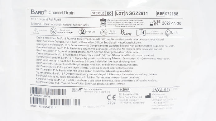 - Bard 072188 Channel Drain 15 Fr. Round Full Fluted, Silicone