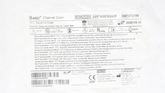 - Bard 072188 Channel Drain Round Full Fluted Silicone, 15 Fr