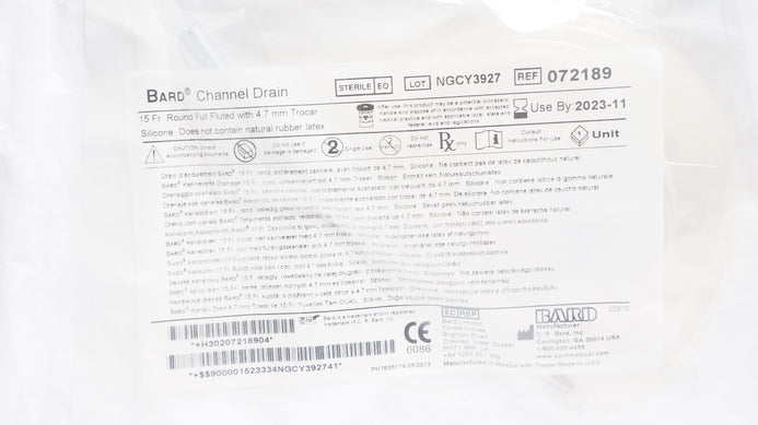 - Bard 072189 Channel Drain 15 Fr. Round Full Fluted with 4.7mm Trocar Silicone(x)