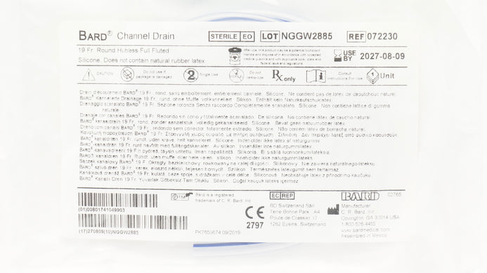 - Bard 072230 Channel Drain Round Hubless Full Fluted Silicone 19 Fr.