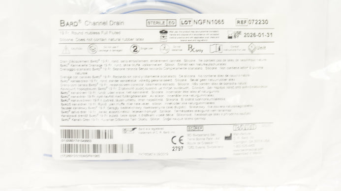 - Bard 072230 Channel Drain Round Hubless Full Fluted Silicone 19 Fr.
