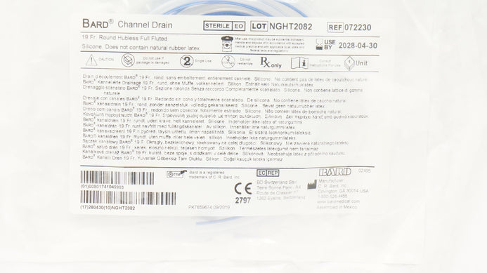- Bard 072230 Channel Drain Round Hubless Full Fluted Silicone 19 Fr.