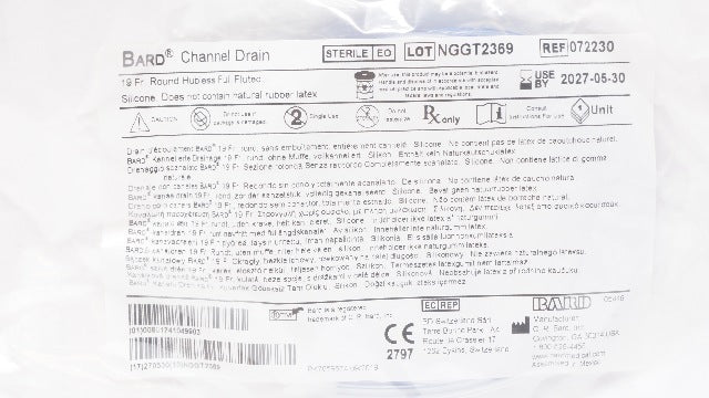 - Bard 072230 Round Hubless Full Fluted Silicone Channel Drain 19 Fr.