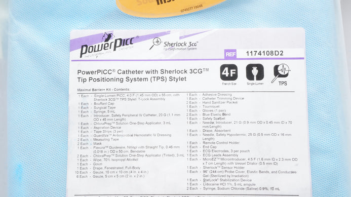 - Bard 1174108D2 PowerPICC Cath.W/Sherlock 3CG Tip Positioning System Stylet 4F(x)