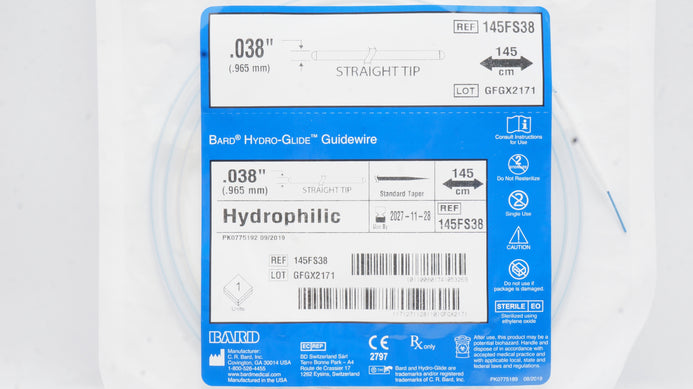 - Bard 145FS38 Hydro-Glide Guidewire, Straight Tip Fixed Core 0.038inch x 145cm