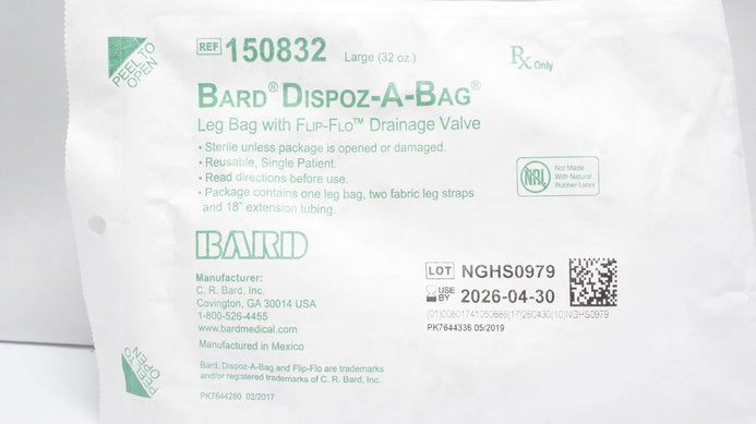 - Bard 150832 Dispoz-A-Bag Leg Bag w/ Flip-Flo Drainage Valve 32oz.