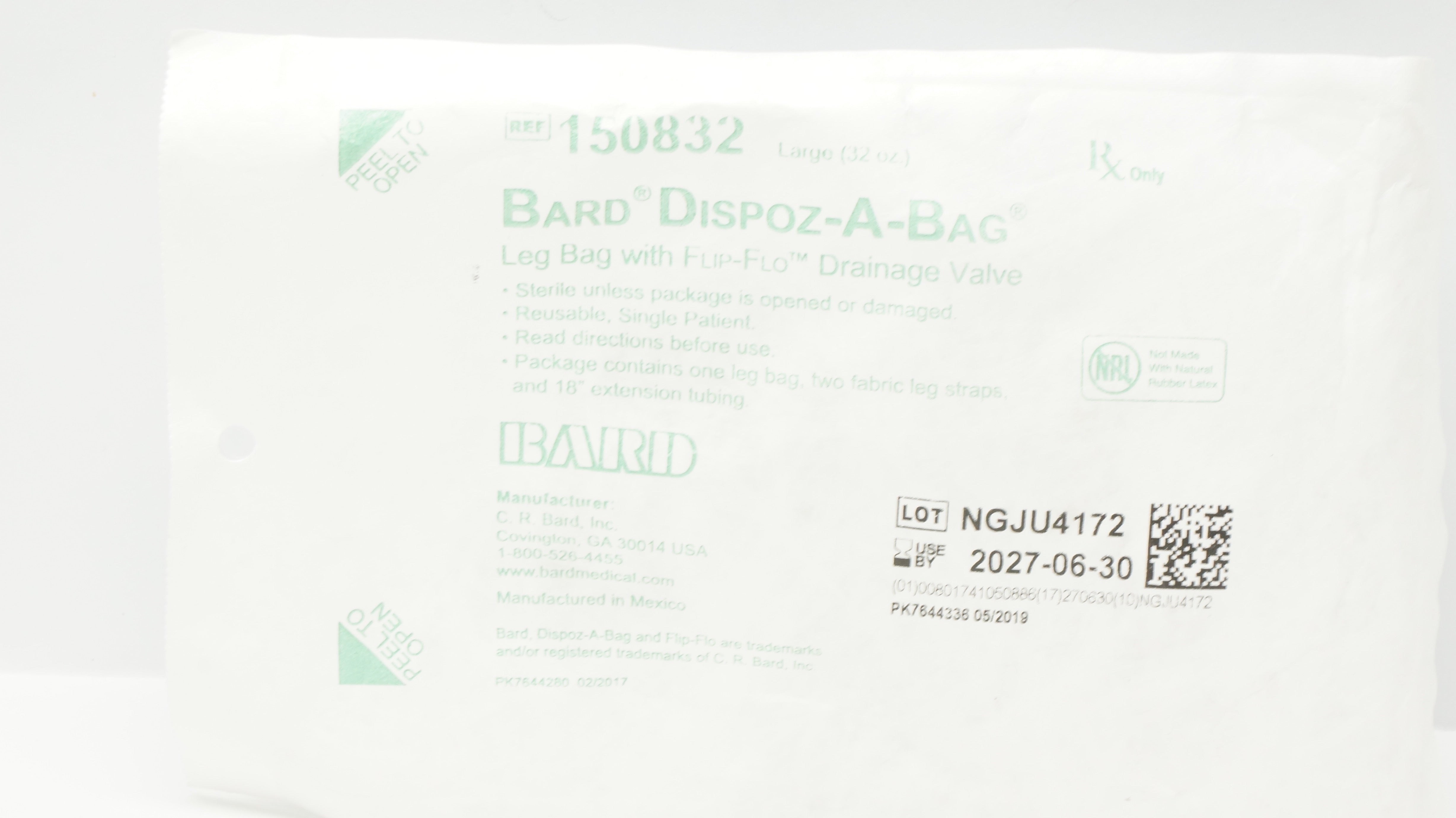 - Bard 150832 Latex-Free Dispoz-A-Bag Leg Bag w/ Flip-Flo Drainage Valve