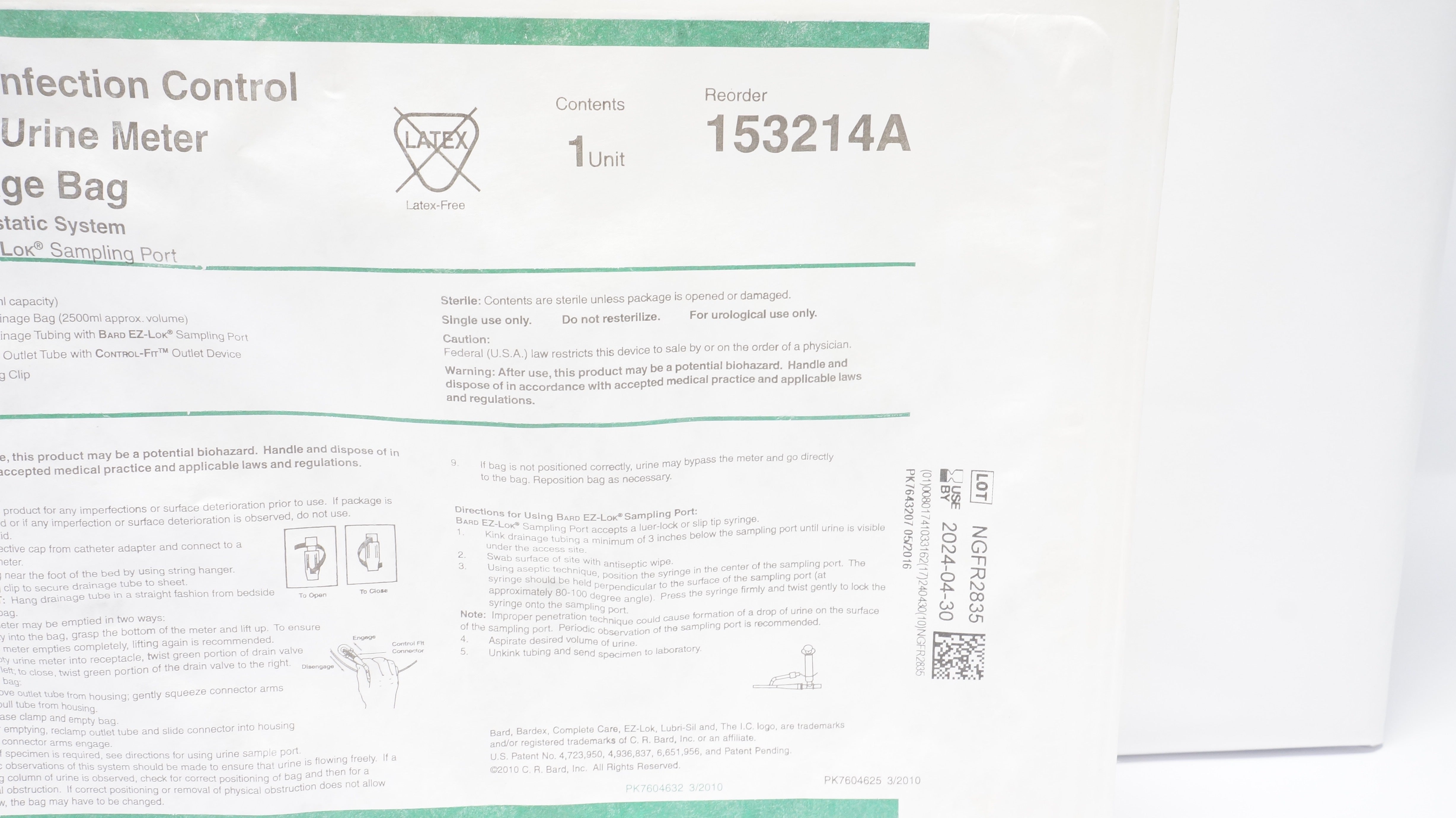 - Bard 153214A Infection Control Urine Meter Drainage Bag 350 ml (x)