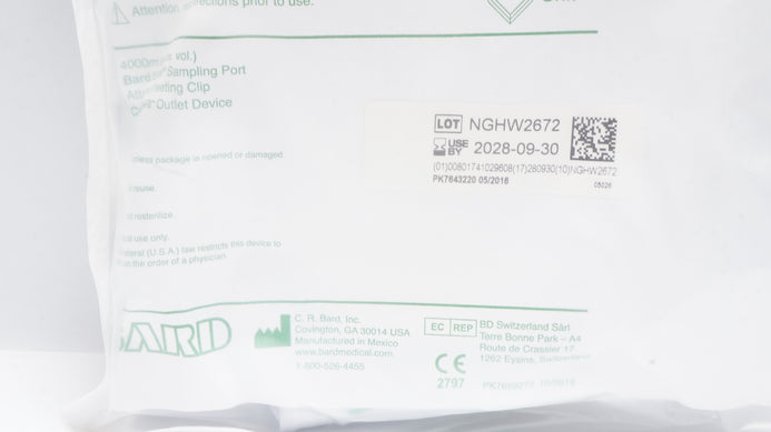 - Bard 153509 Ceneter Entry Closed System Urinary Drainage Bag 4000 ml