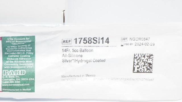 - Bard 1758SI14 Lubri-Sil I.C. Anti-Microbial All-Silicone Foley Cath. 14Fr (x)