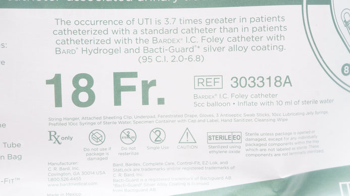 - Bard 303318A Bardex I.C. Complete Care Infection Control Foley Cath. Tray 18Fr.